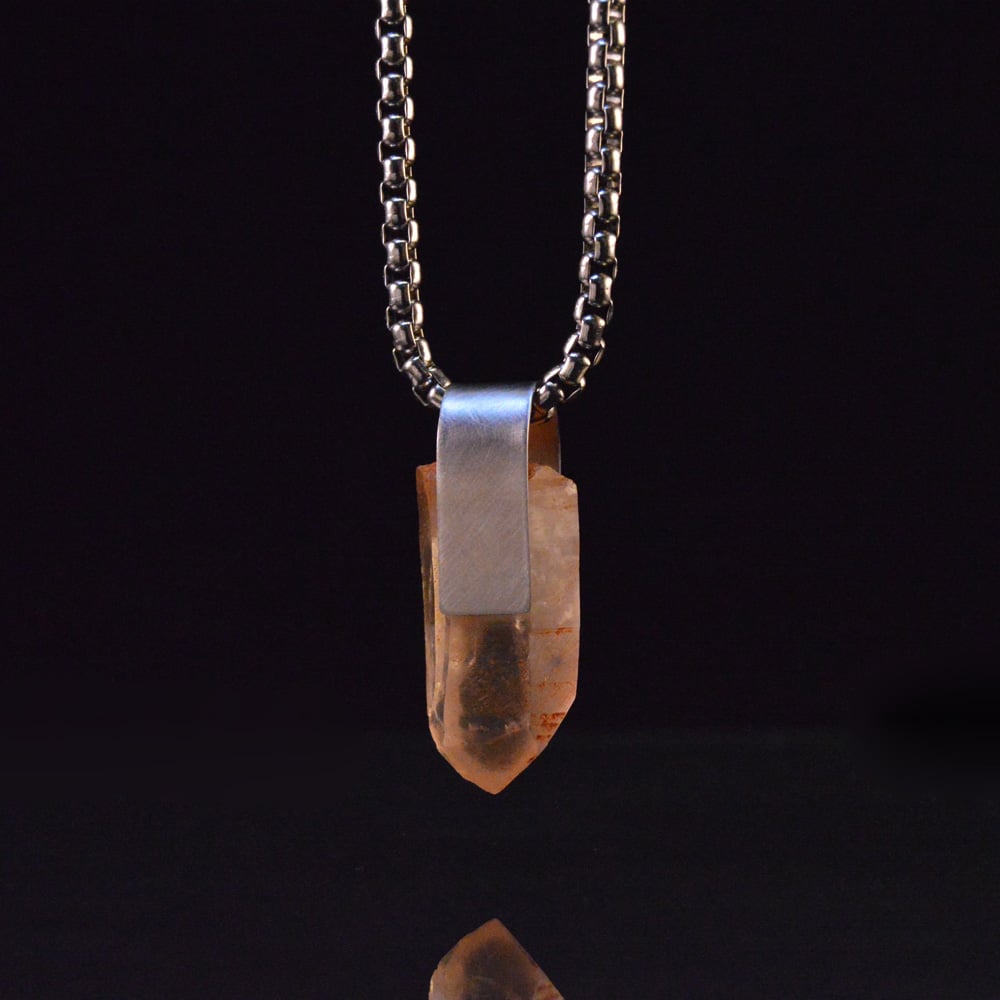 Lemurian Golden Healer Quartz crystal (Brazil), stainless steel, stainless steel chain.