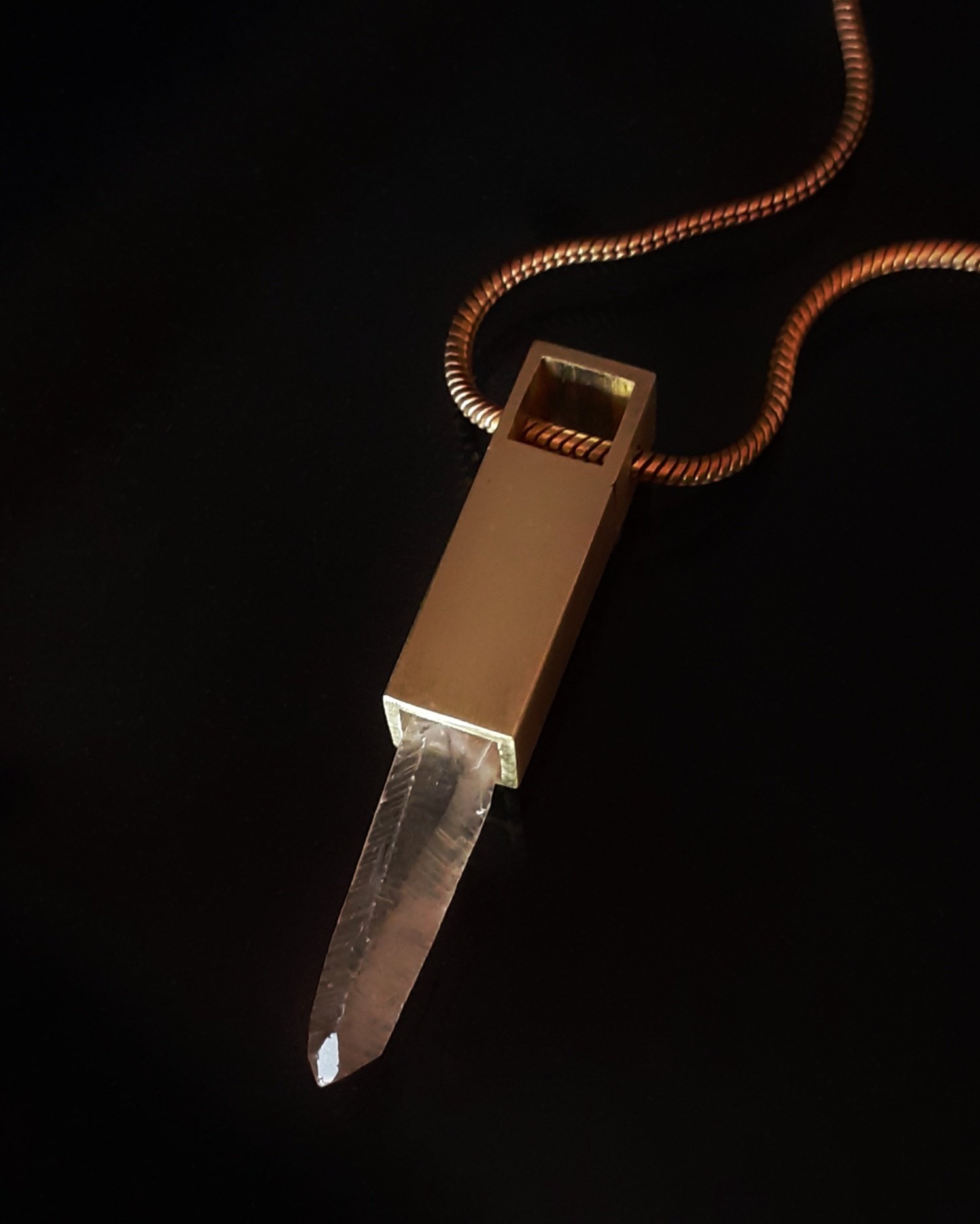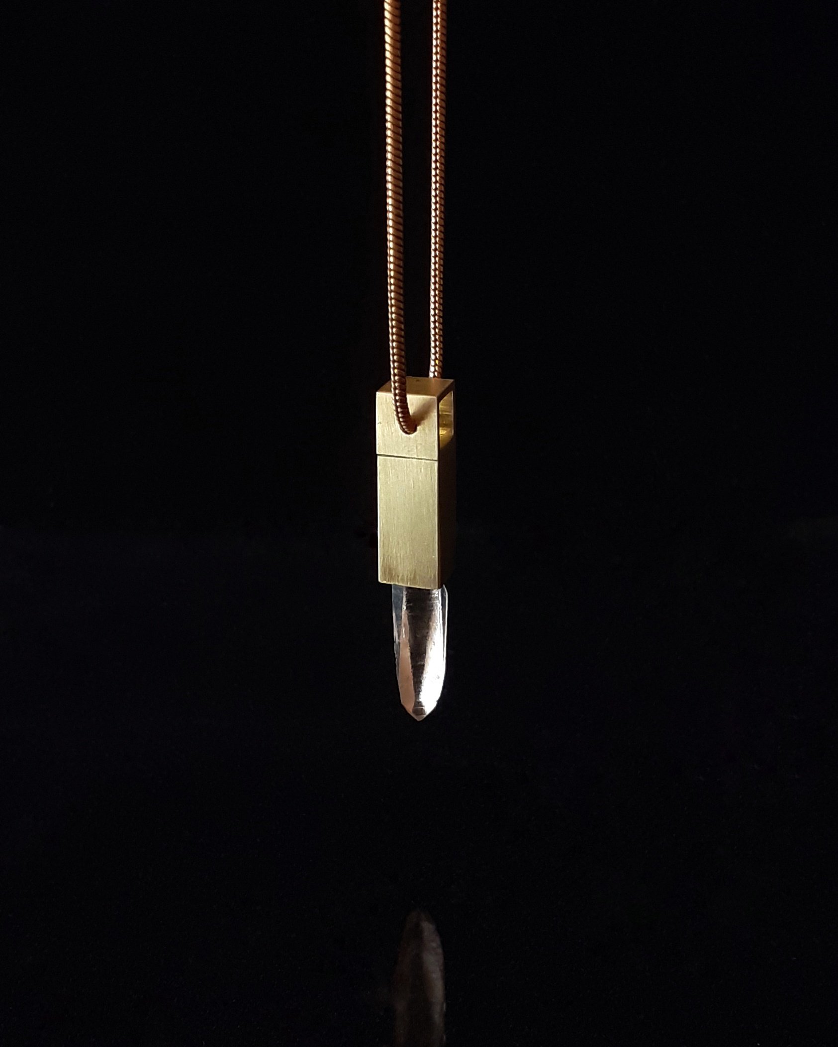 Lemurian Golden Healer Quartz crystal (Brazil), gold-plated brass, gold-plated chain.